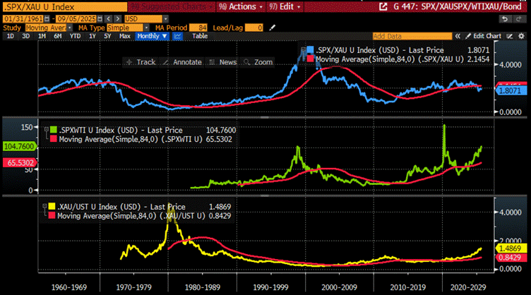 As of September 5th , 2025, the US remains in an inflationary boom, but with the S&P 500 to Gold ratio now below its year below its 7-year moving average for more than 7 months, an inflationary bust will materialize much sooner than Wall Street pundits and their parrots are eager to tell their clients. In this context, investors should stay calm, disciplined, and use market data tools to anticipate changes in the business cycle, rather than fall into the forward confusion and illusion spread by Wall Street.