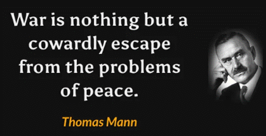 At the end of the day, as Thomas Mann observed, “War is nothing but a cowardly escape from the problems of peace.”