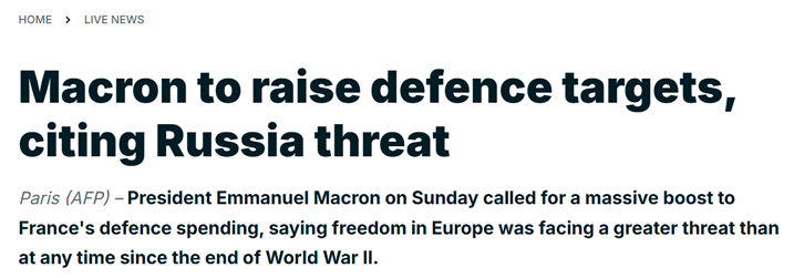https://www.france24.com/en/live-news/20250714-macron-to-raise-defence-targets-citing-russia-threat