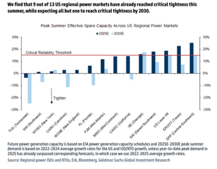 On the topic of grid fragility, it only took one little substation hiccup in Baltimore in August to put over a million Baltimore Gas and Electric customers on “maybe no AC for hours” alert. The problem got fixed in a few hours, but it was a perfect reminder of how delicate the local grid has become after years of ambitious green experiments… or, as some might call it, ‘epic mismanagement by green zealots’ leadership’. Unfortunately, most U.S. regional markets will remain critically tight through 2030. Heatwaves and growing power demand are only making things worse, especially in PJM (Mid-Atlantic), where both demand and prices are hitting record highs.
