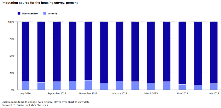 In British English, there’s a perfect term for it: “jobsworth”—someone who slavishly follows petty rules at the expense of sense. Enter the US CPI. Produced by an underfunded agency, it turns out about a third of the prices are just guesses, dressed up in statistical glitter. For housing, if a unit is vacant, they “impute” its rent from nearby units; if it’s long-term vacant, they copy the average of occupied ones. In other categories, missing prices are filled in from similar items—or if all else fails, carried forward with the assumption that nothing changed.