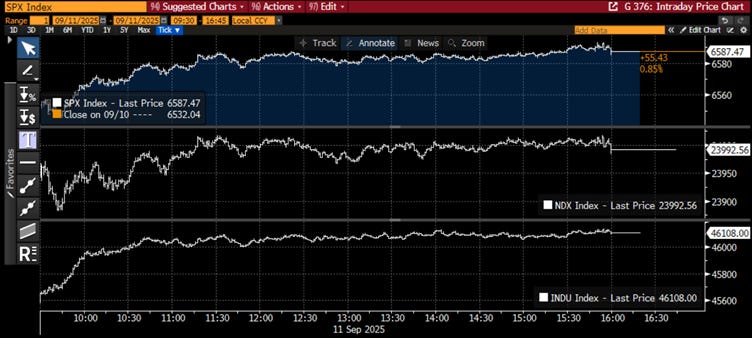 Wall Street threw itself a victory party over an “on-target” CPI, sending the Dow, S&P 500, and Nasdaq 100 dancing to fresh record highs—cupcakes, confetti, and all.